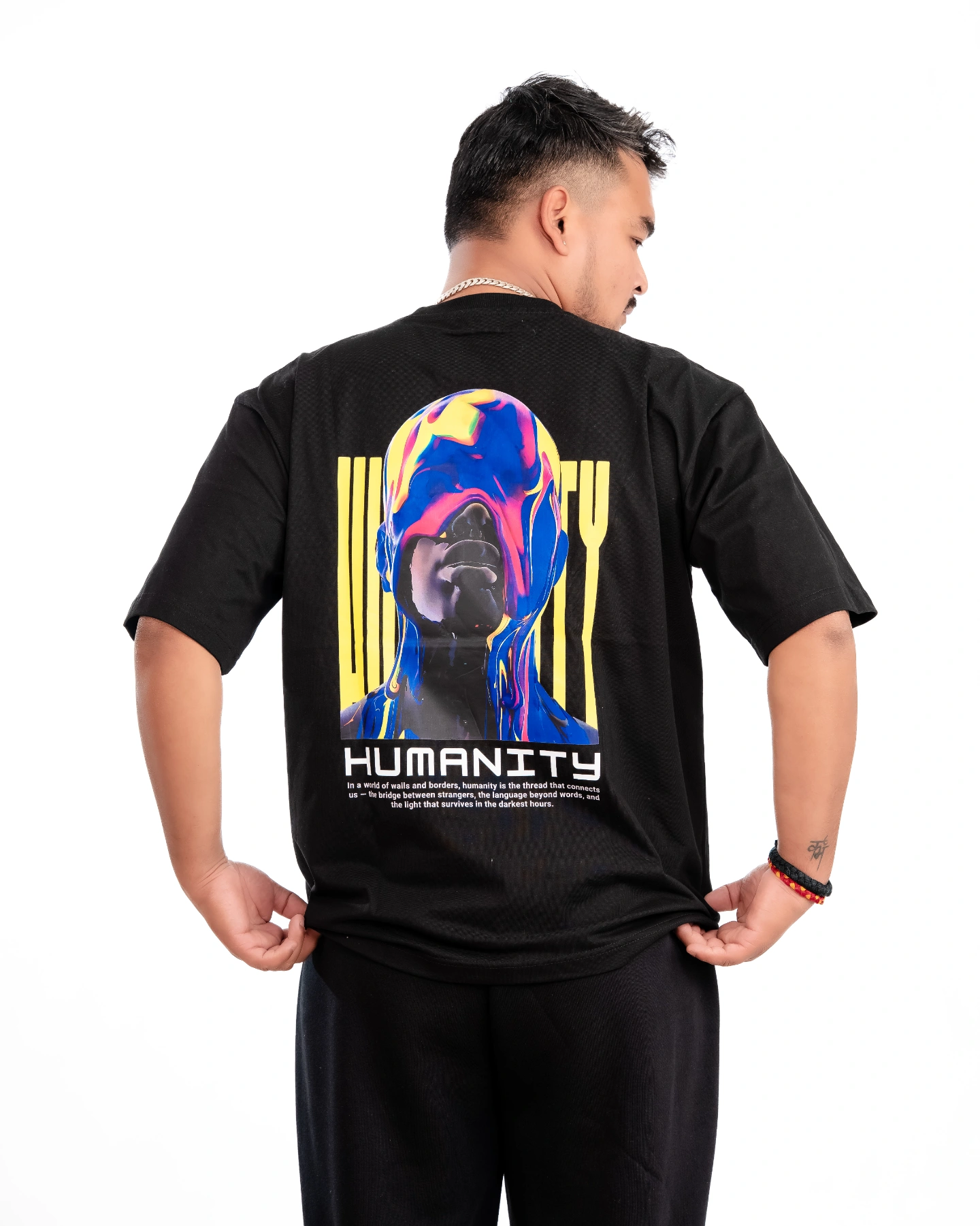 Make a bold yet thoughtful statement with the Platform® Humanity Printed Tee. Designed for those who believe in purpose-driven fashion, this tee features a striking A3-size graphic print that embodies the essence of unity, empathy, and human connection.