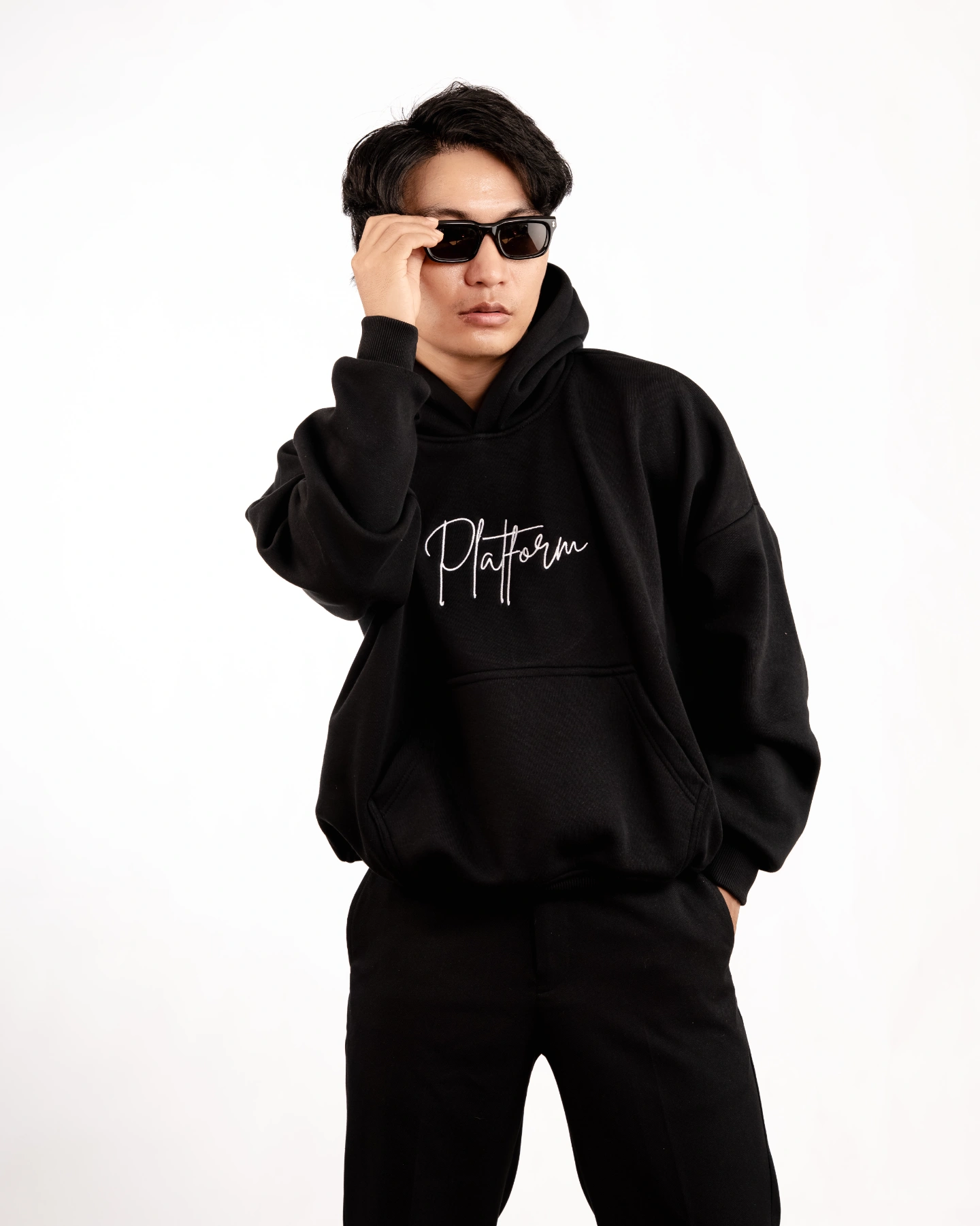 Elevate your everyday style with the signature Platform® Black Embroidery Hoodie. Crafted from a soft, heavyweight fleece blend, it delivers all-day comfort with a refined streetwear edge.