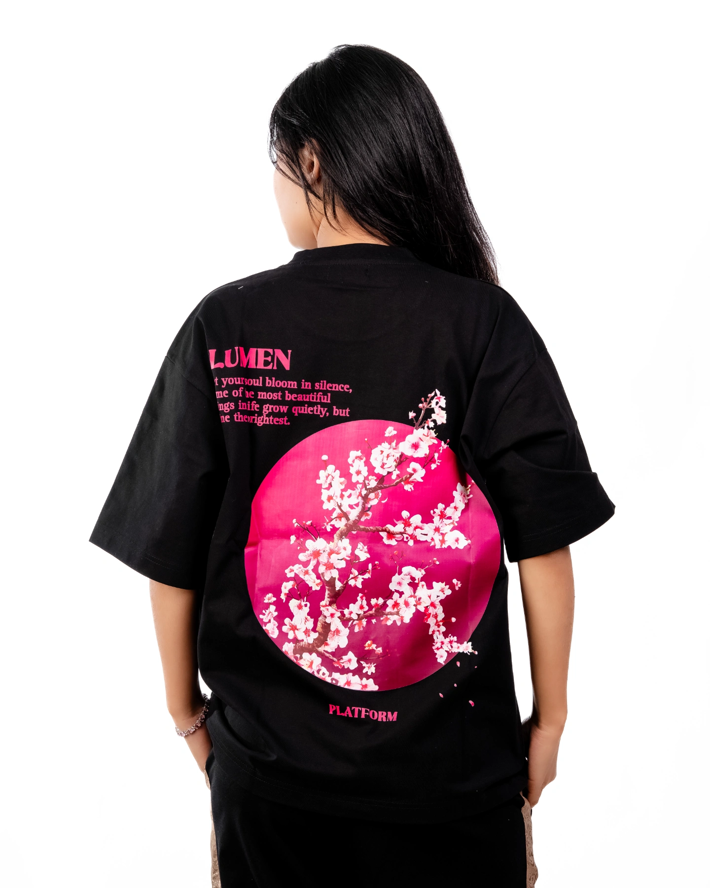 Illuminate your style with the Lumen Edition Tee, crafted from soft, high-quality fabric for all-day comfort. The standout feature is the striking pink moon-inspired circular print on the back, adding a bold, artistic edge to your look. Designed to combine comfort, style, and statement-making visuals, this T-shirt is perfect for those who want to shine in every setting.
