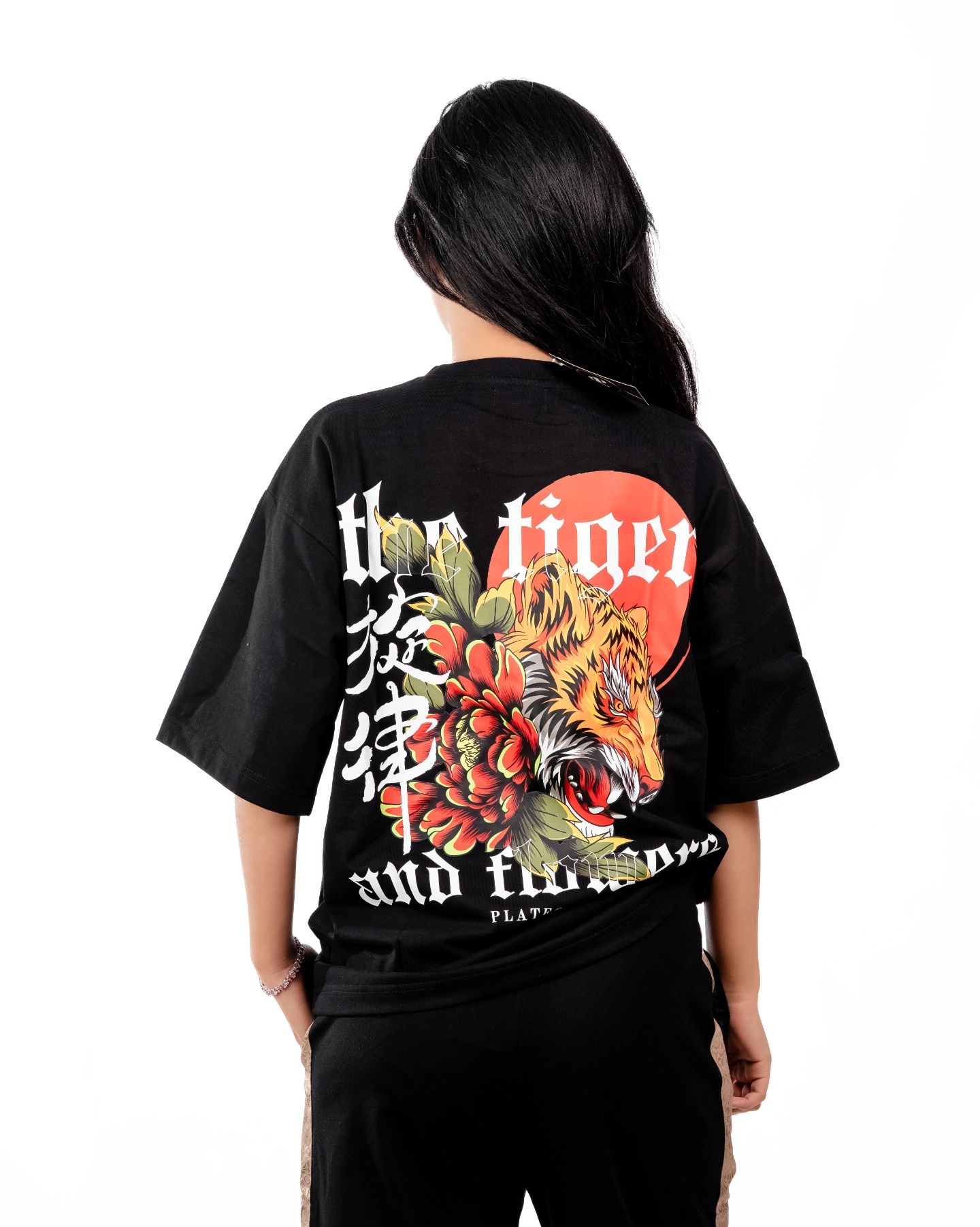 The back features a dramatic A3-size tiger print, symbolizing strength, courage, and dominance. On the front, the minimal design is elevated with a red 3D Platform branding, adding a sharp, standout detail that contrasts perfectly against the clean silhouette.